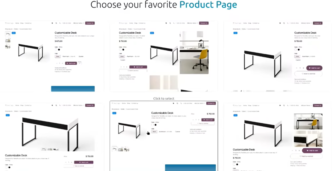 Odoo 19 introduit de nouveaux modèles de catalogues produits pour les boutiques en ligne. Modernes et adaptables à tous les secteurs (immobilier, ameublement, artisanat, etc.), ces modèles offrent un design professionnel et personnalisable pour chaque entreprise.